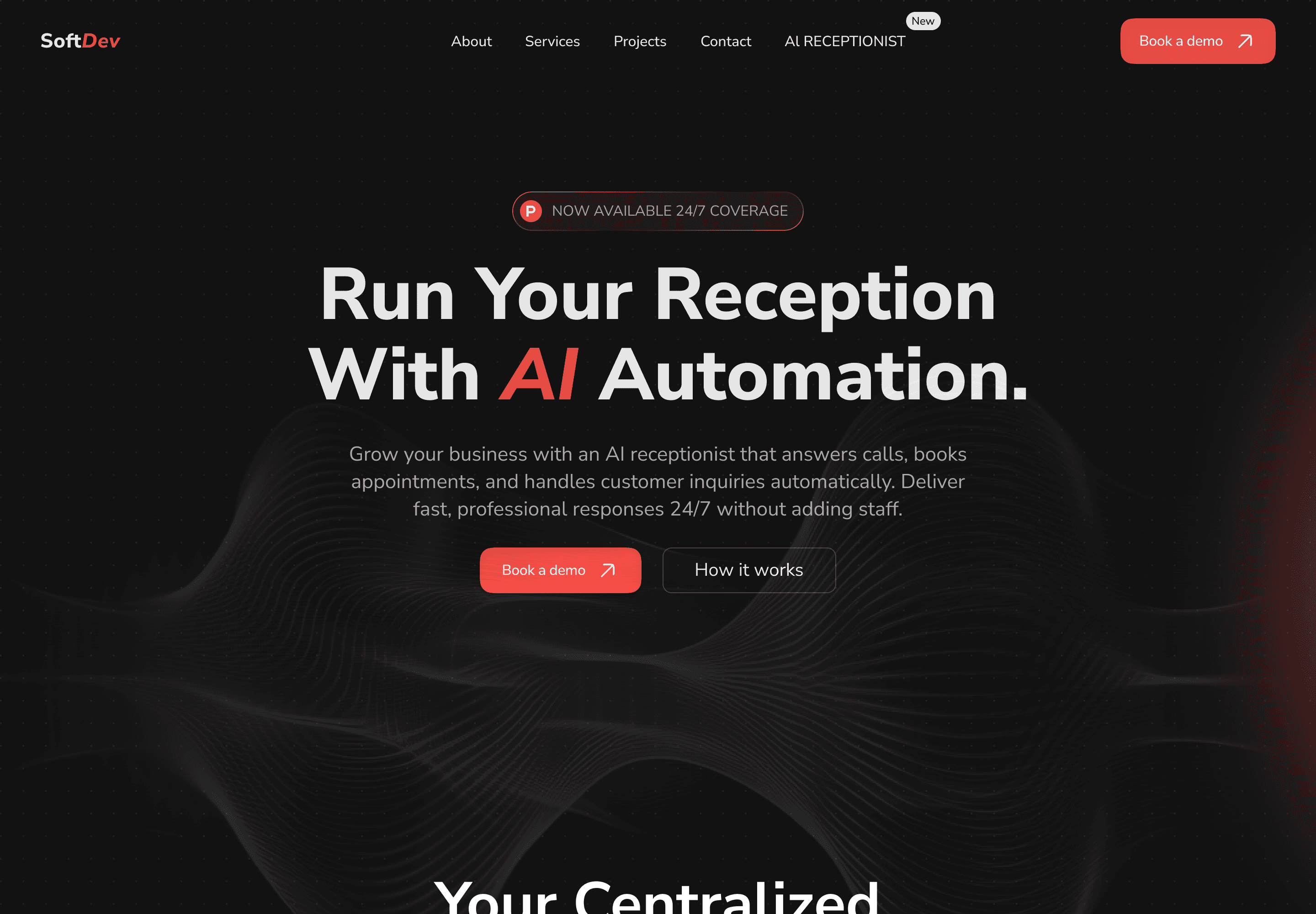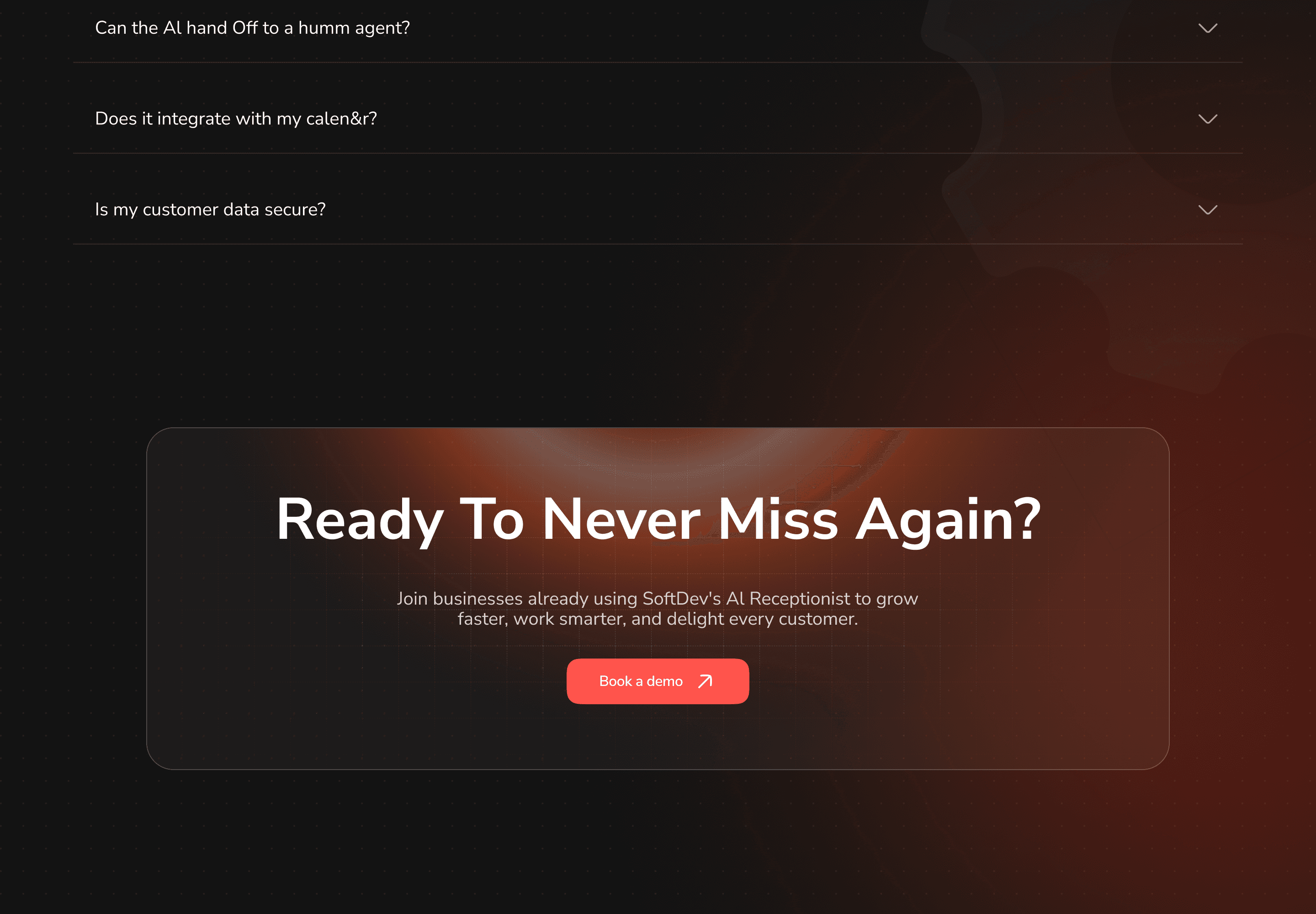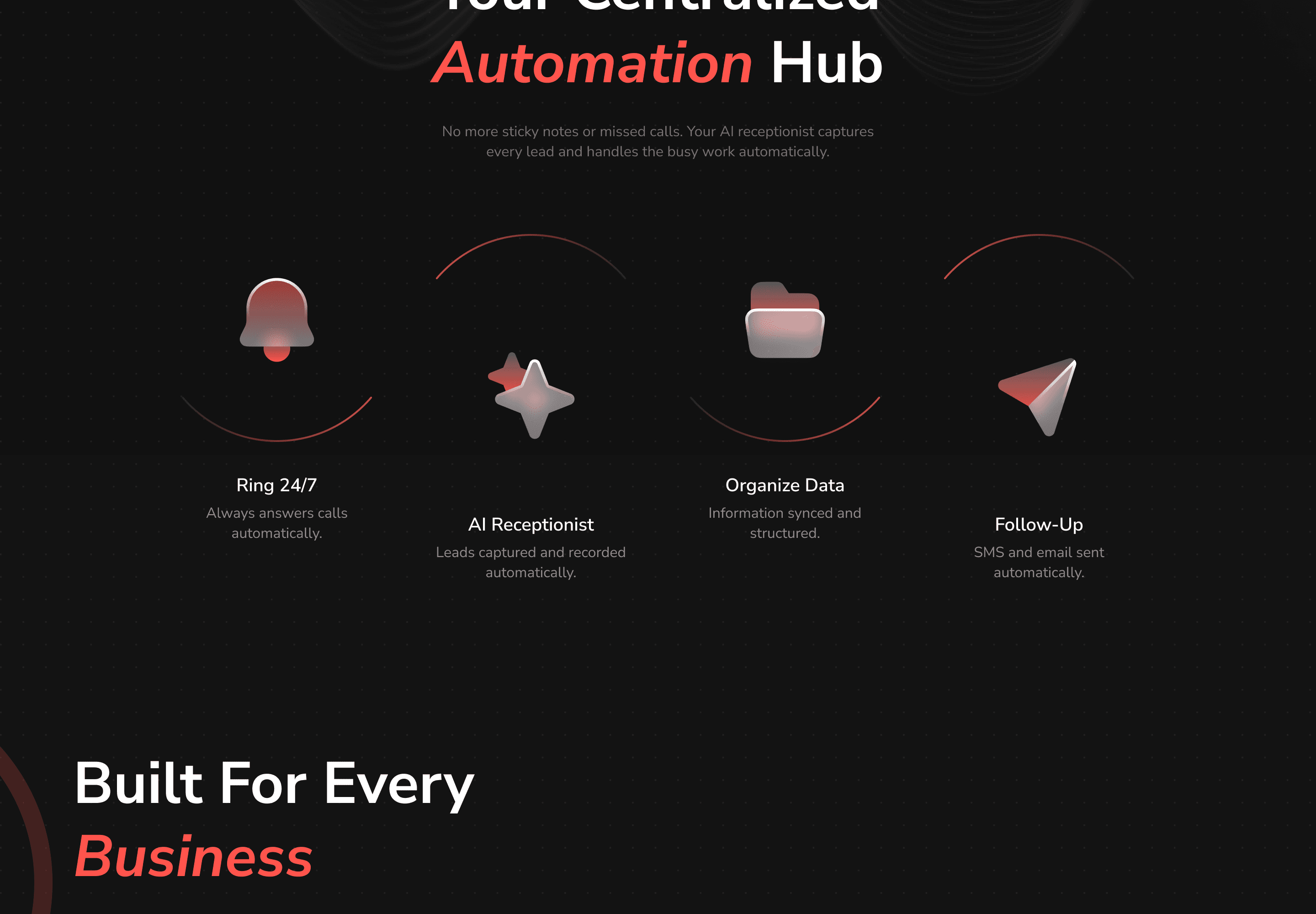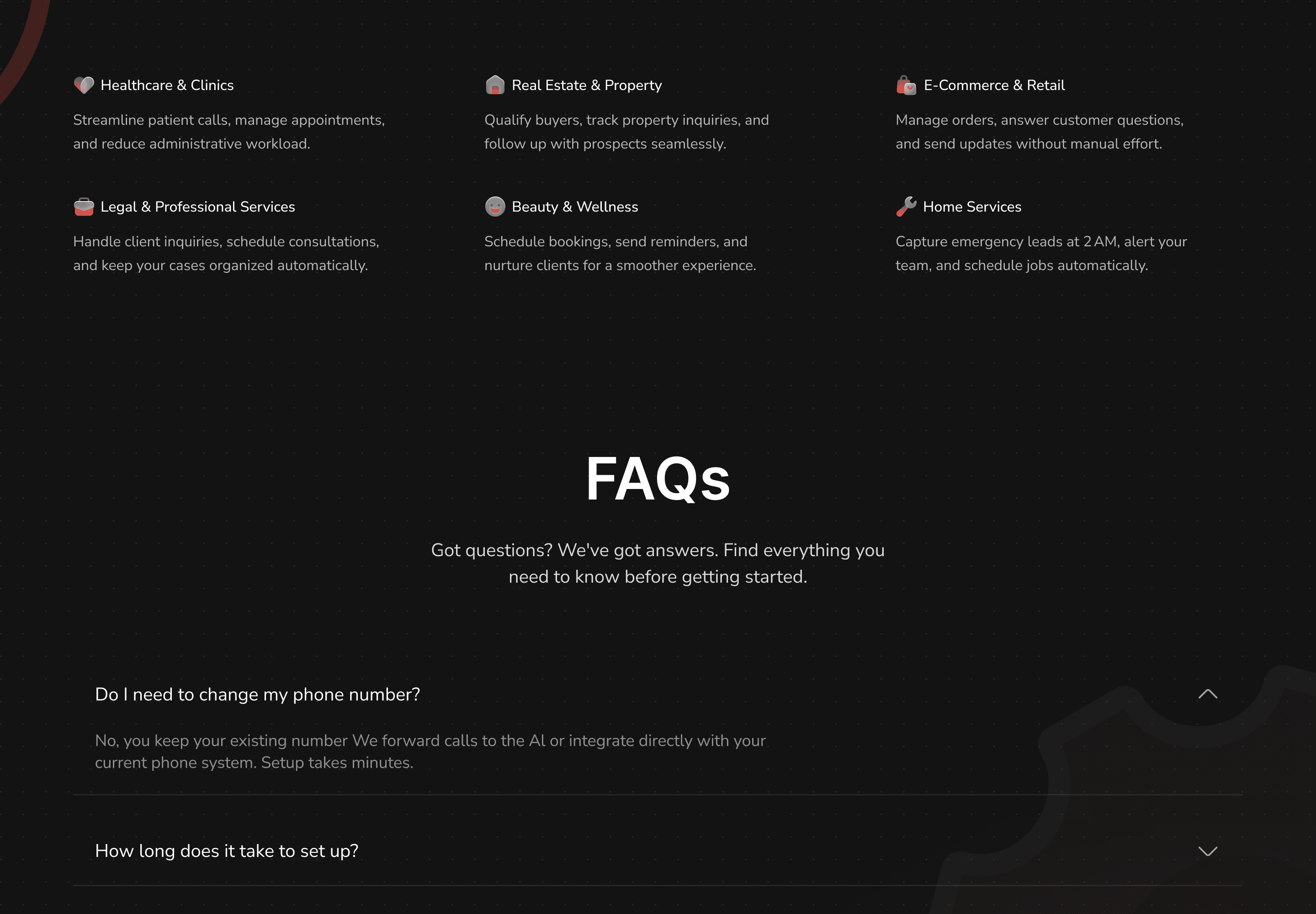 Redesigned a landing page for an AI receptionist that handles calls, books appointments, and qualifies leads automatically.